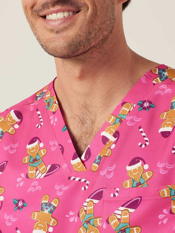 XMAS Gingerbread Surfer Print Scrub Unisex Top (CATRST) - Pink