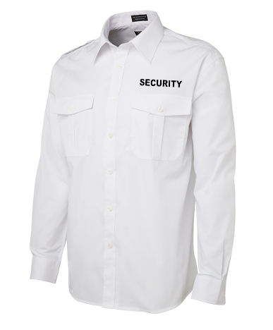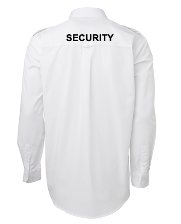 WHITE EPAULETTE SHIRT WITH SECURITY LOGO FRONT & BACK