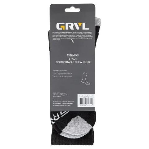 GRVL Everyday Comfortable Crew Socks - 5 Pack